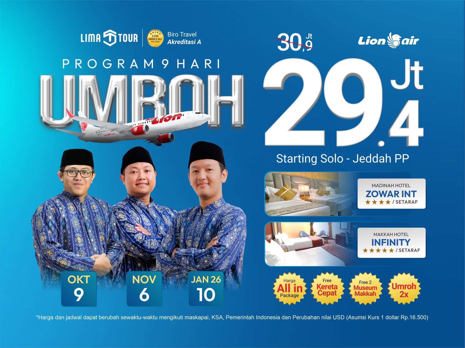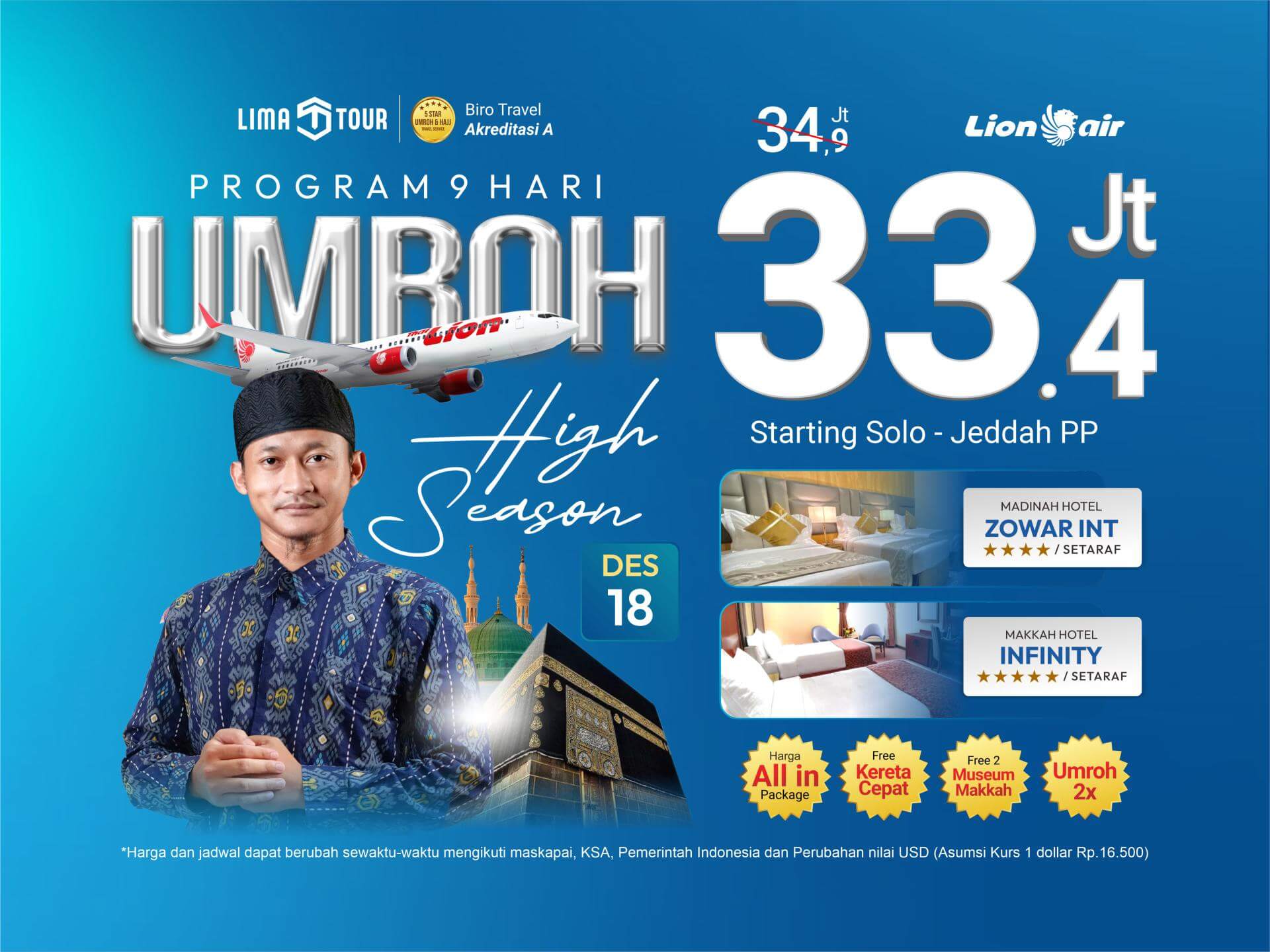 Perusahaan kami resmi berdiri pada tahun 2010 sebagai Lima Tour. Kami adalah perusahaan tour profesional dan telah berkecimpung di dunia haji dan umrah lebih dari 8 tahun Kami adalah perusahaan yang bergerak di bidang Jasa Haji Umrah, Penyedia Visa, Umrah Plus, Paket Haji Furoda dan Paket Haji. Sebuah agen perjalanan yang berbasis di Indonesia.